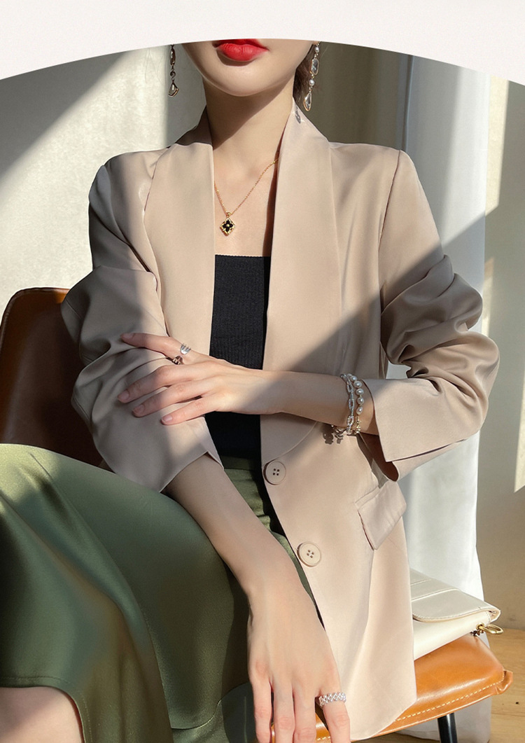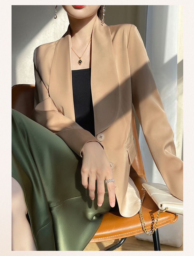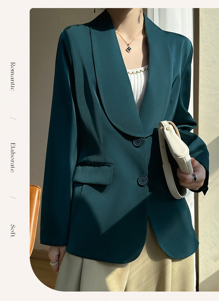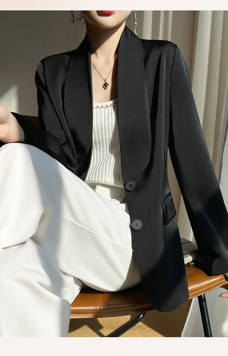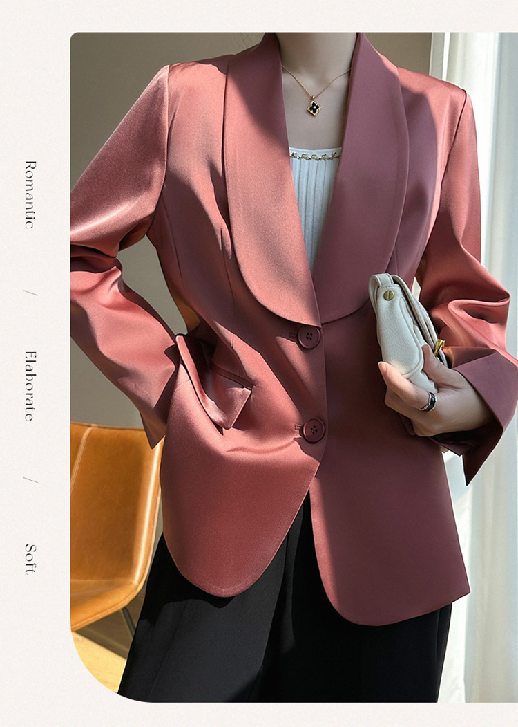 Plus Size - Women'S Luxury -Like Satin Loose-Fitting Suit Jacket - Thin Design Professional High-End Tailored Blazer, Solid Color Elegant Office & Formal Wear, Spring/Autumn Versatile Outerwear for Business, Weddings, Semi-Formal Events - Women'S Fa