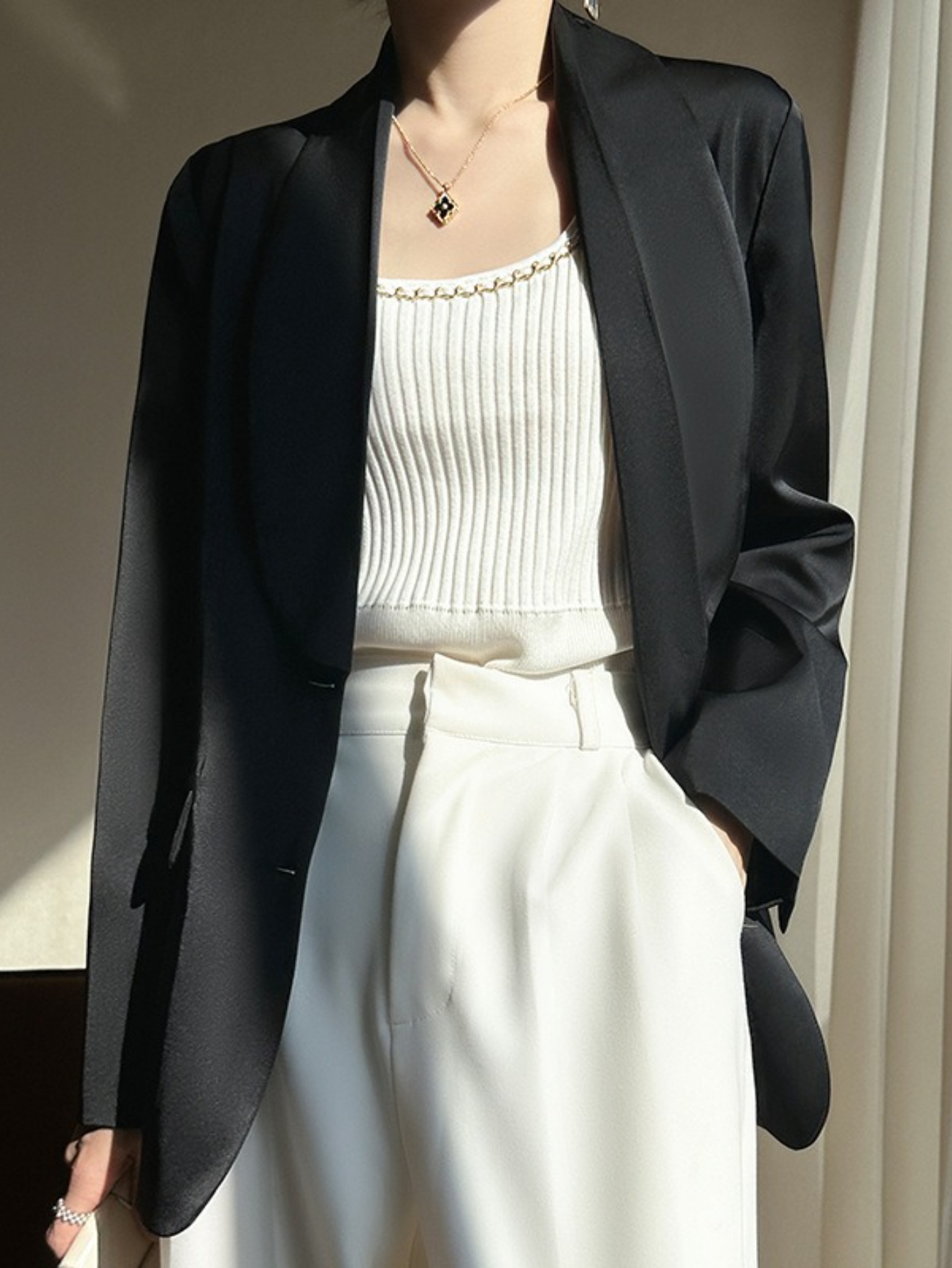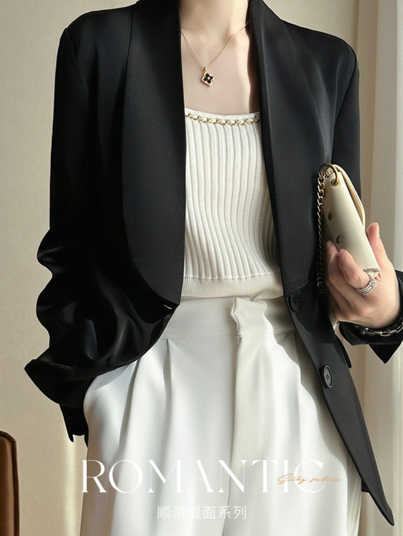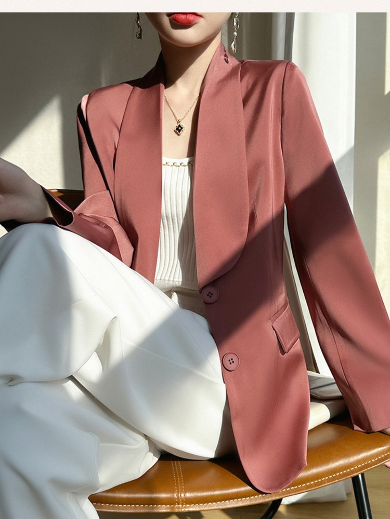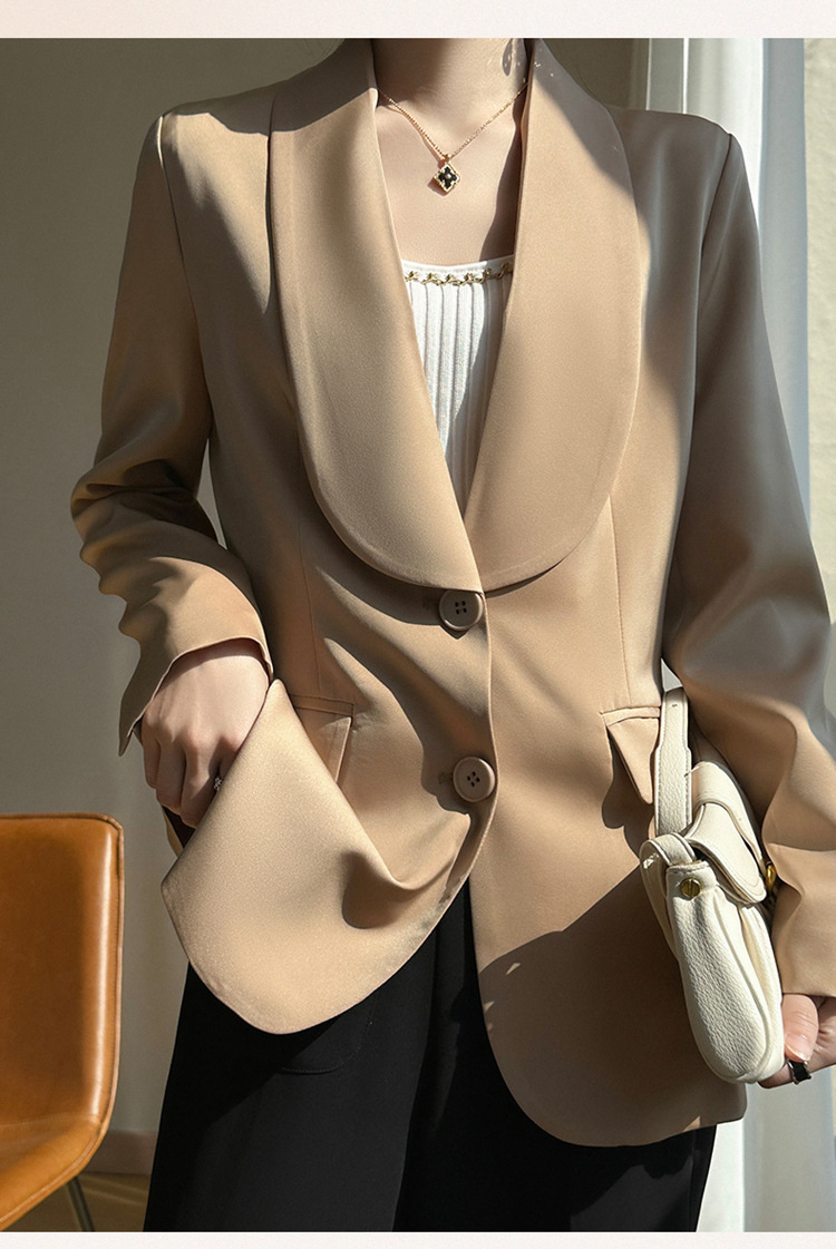 Plus Size - Women'S Luxury -Like Satin Loose-Fitting Suit Jacket - Thin Design Professional High-End Tailored Blazer, Solid Color Elegant Office & Formal Wear, Spring/Autumn Versatile Outerwear for Business, Weddings, Semi-Formal Events - Women'S Fa