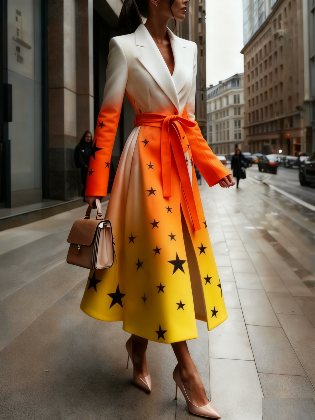 Plus Size - Women'S Elegant Lapel Blazer - Slim-Fit Long Knee-Length 2D Printed Suit Coat with Golden Pattern, Structured Lapel Collar & Single-Button Closure, All-Season Versatile Work, Travel & Outing Coat for Professional & Casual Wear - Queen-In