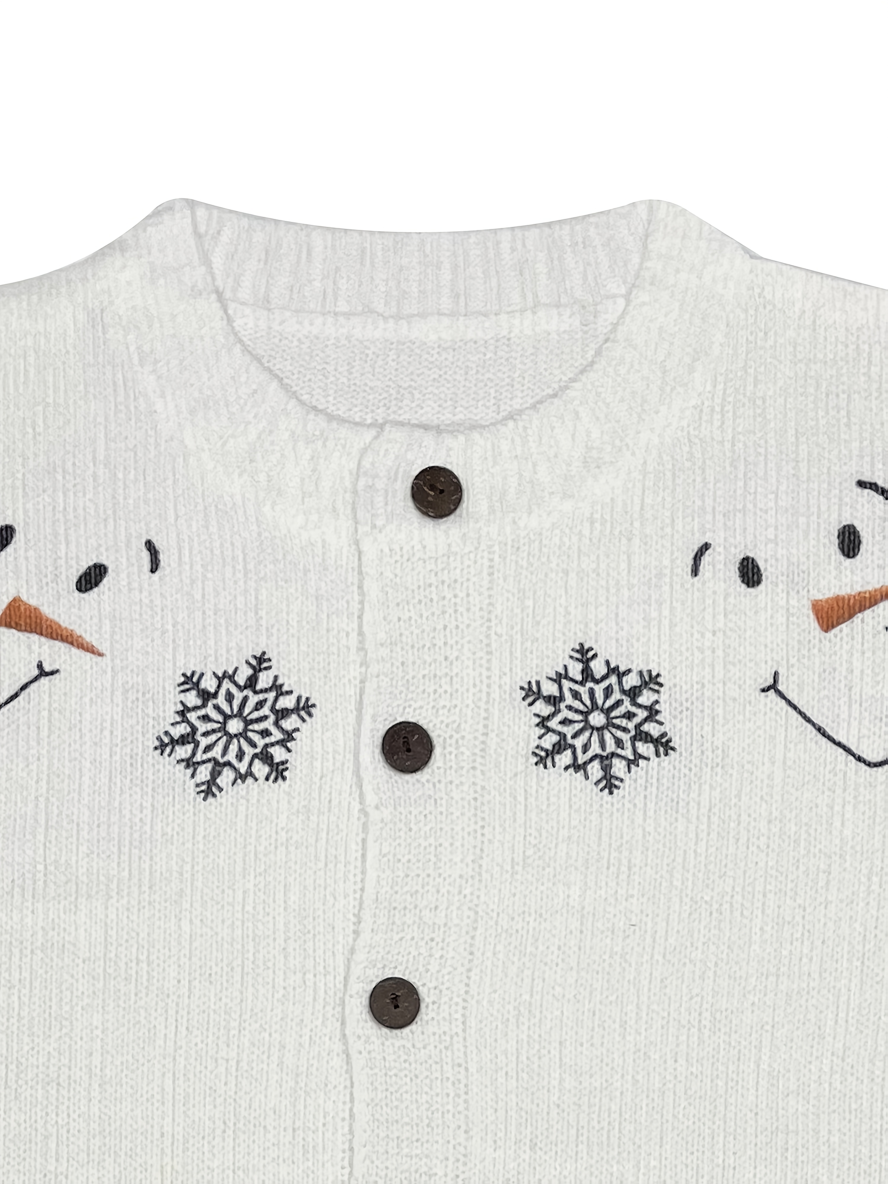 [Winter Sweater] Cozy White 3D Printed Snowman & Snowflake Sweater | Winter Cardigan with Buttons, All-Over Winter Design, Perfect for Young Fashionistas