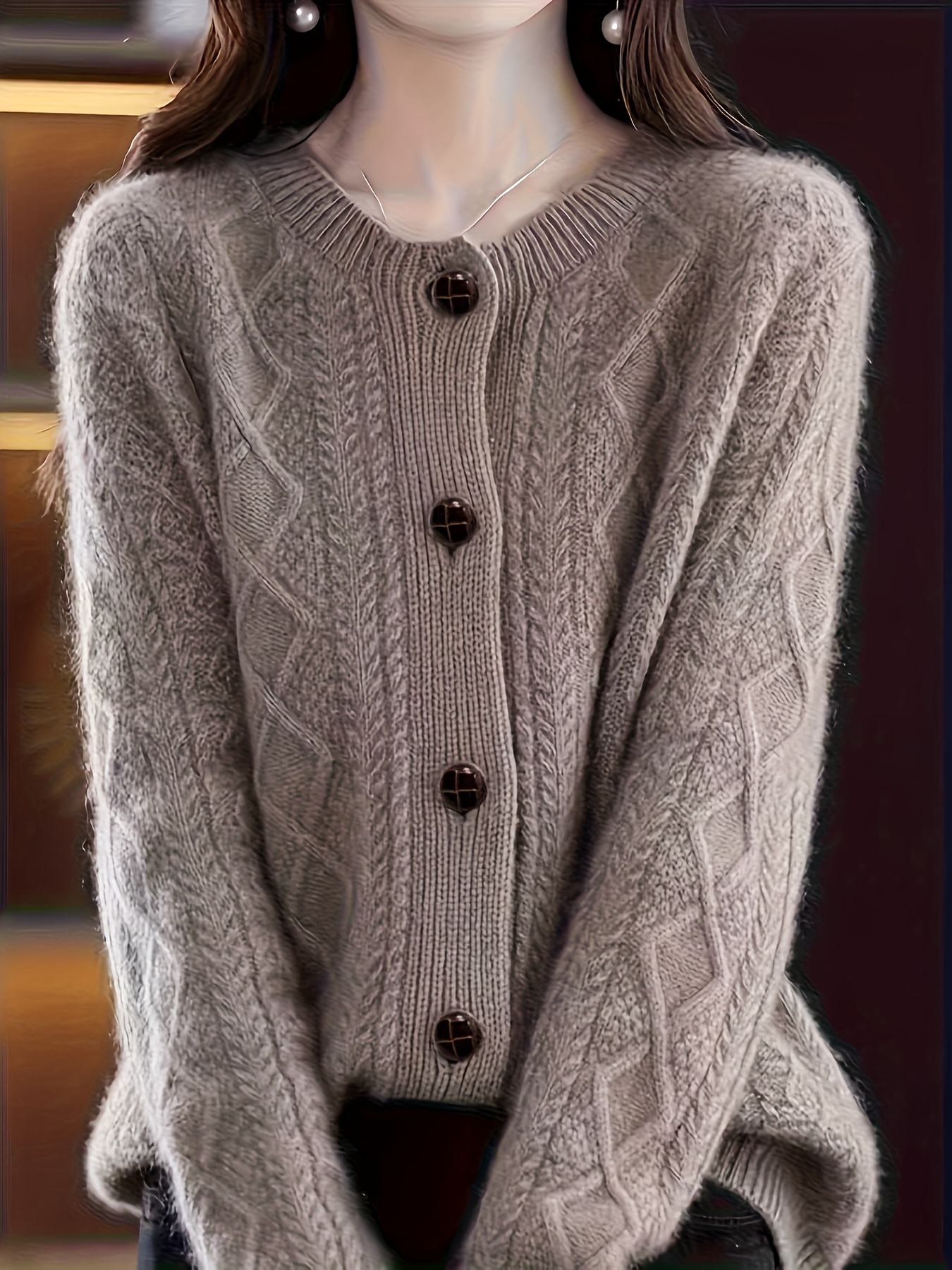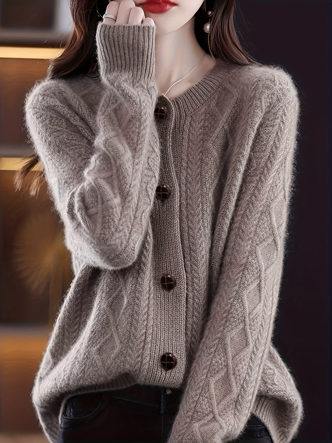 Women'S Elegant Long Sleeve Cardigan - Chic Button-Front Sweater Jacket, All-Season Layering Piece for Office, Party, Everyday - Easy-Care Women'S Outerwear in Neutral Colors (Beige, Brown, Black, Gray, Blue) - Elegant Sweater Coat, Cardigan Sweater, Party Attire, Textured Knitwear, Office Attire, Durable Material, Stylish Coat, Fashion Lovers