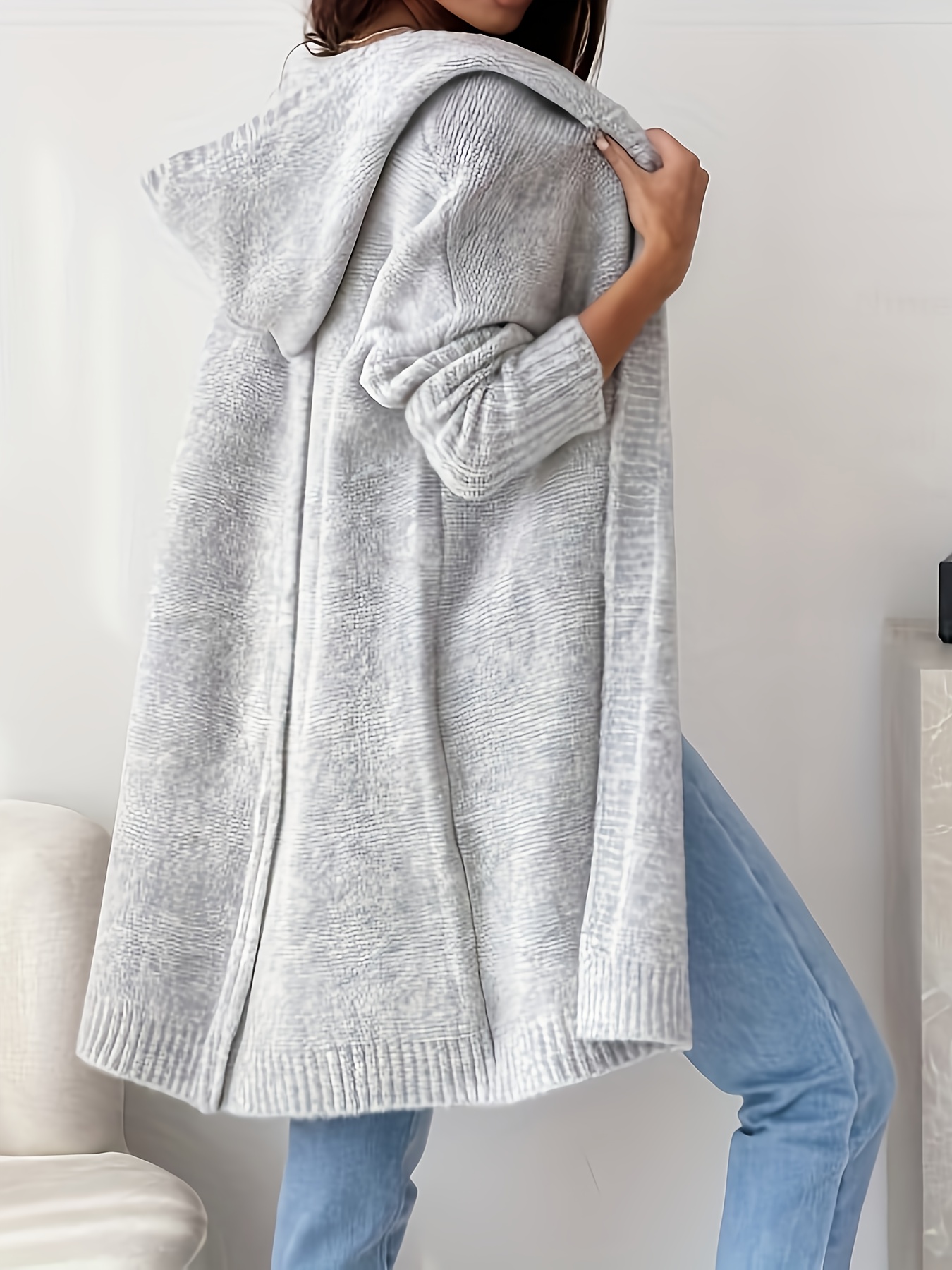 Women'S Light Gray Cardigan - Casual Loose-Fit Long Sleeve Hooded Sweater for Fall/Winter, Versatile Layering Piece with Button Details, Sweater Cardigan