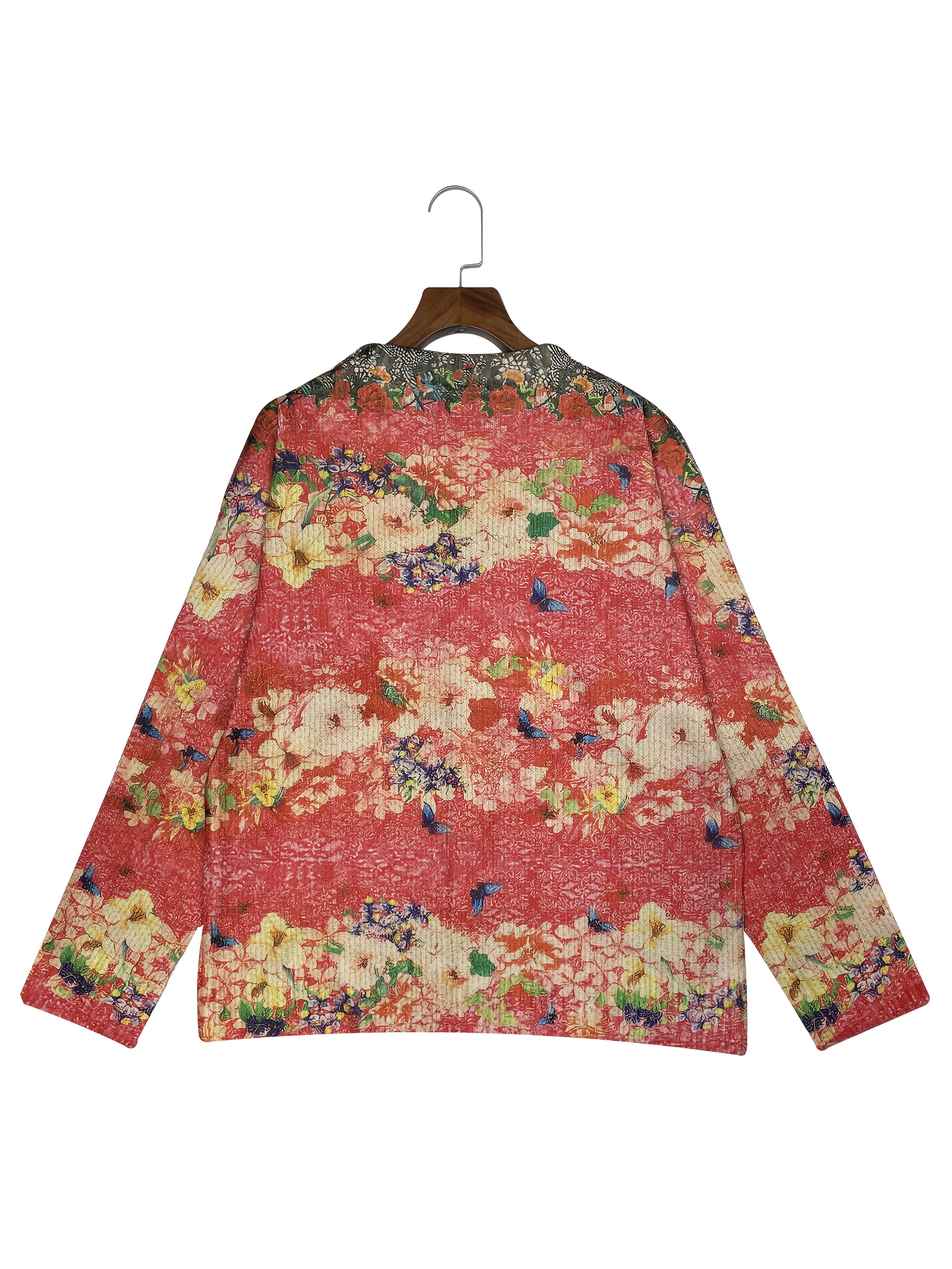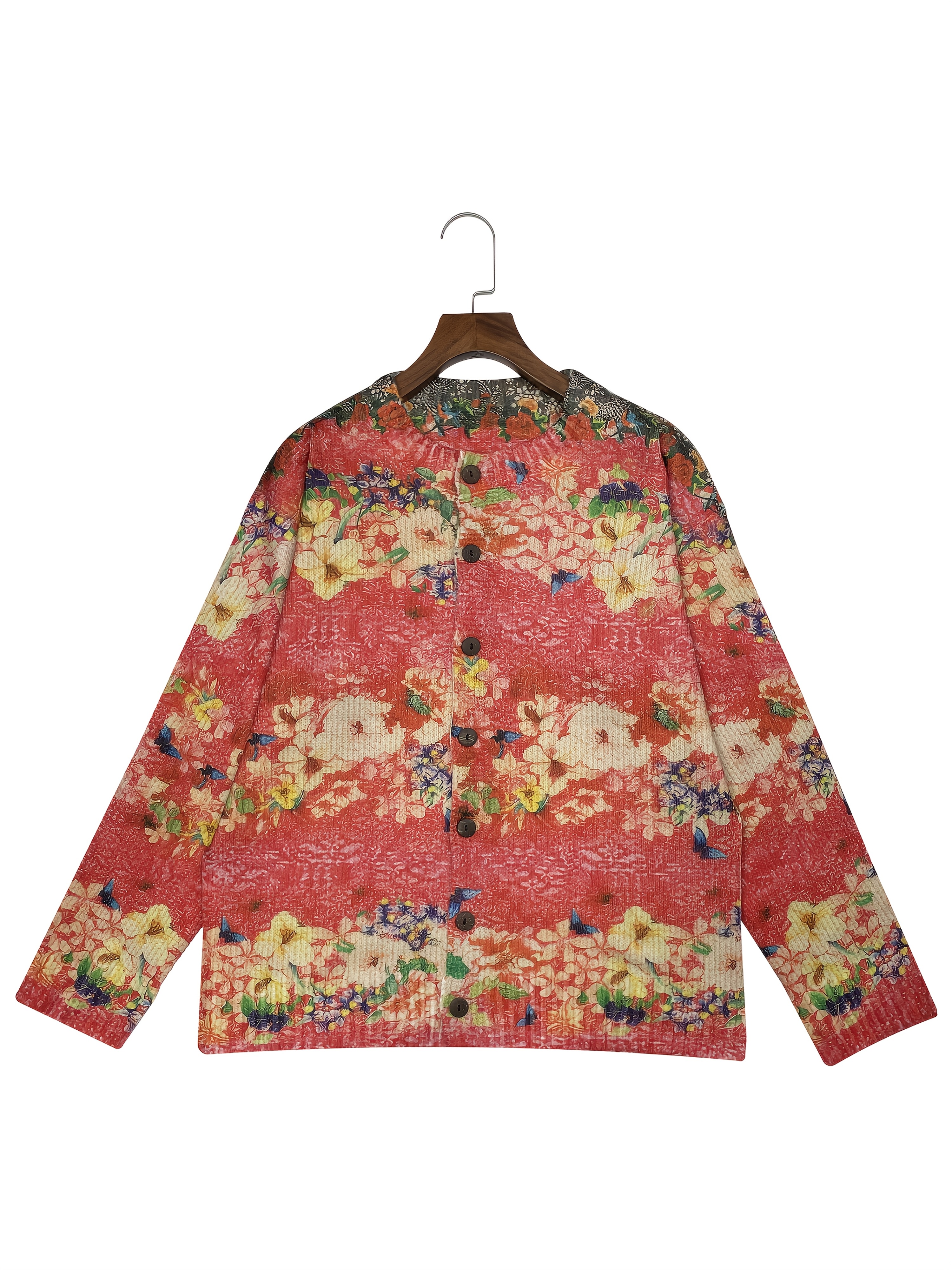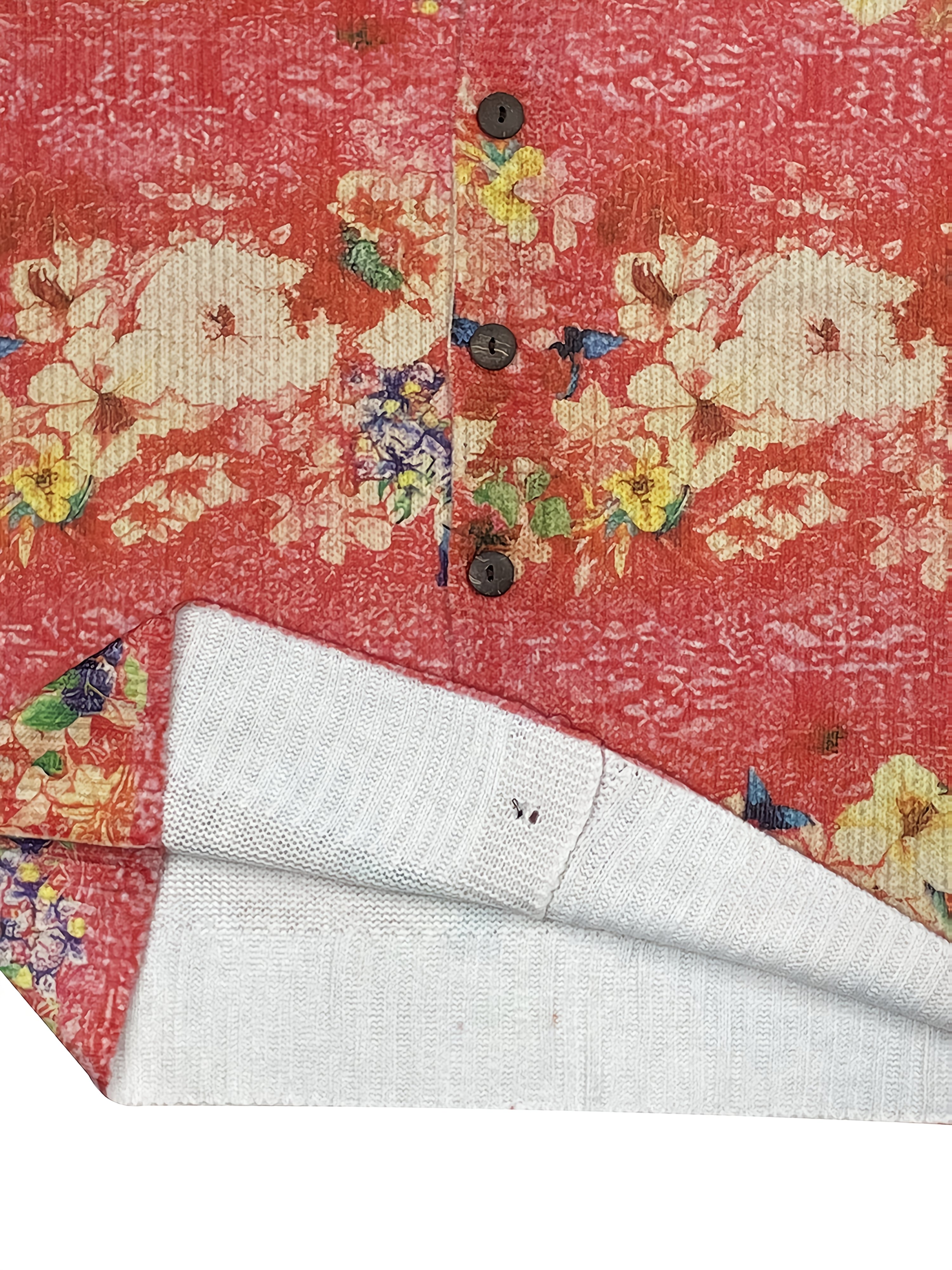 Women'S Vibrant Floral Print Cardigan - 3D All-Over Design, Button-Up Front, Long Sleeves, Lightweight & Breathable for Spring/Fall, White Ribbed Top Underneath, Casual Chic Style, Spring Outerwear | Vibrant Cardigan | Texture