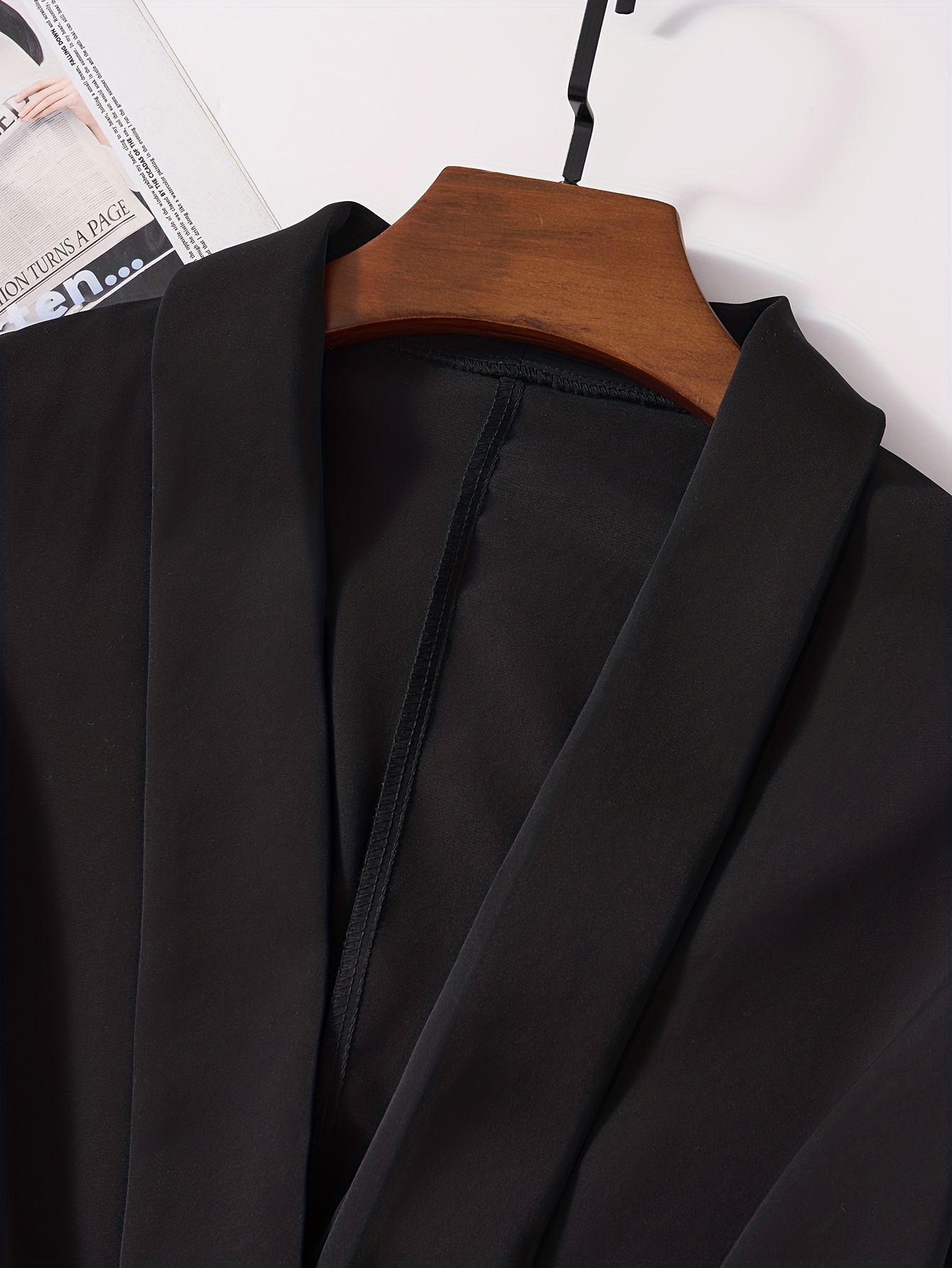 Plus Size, Black leopard print plus-size Women's suit jacket with spliced cuffs, elegant office attire for daily commuting