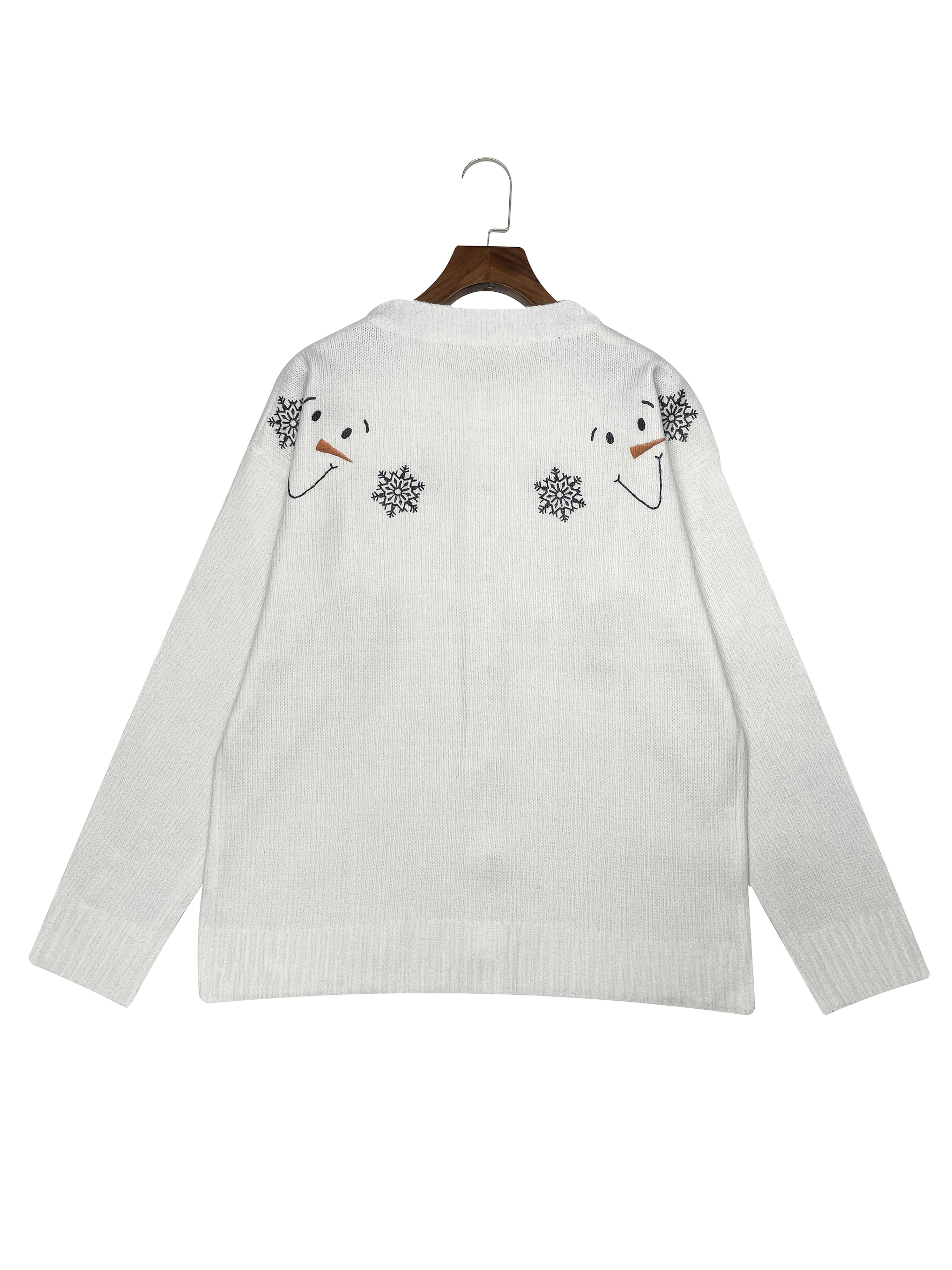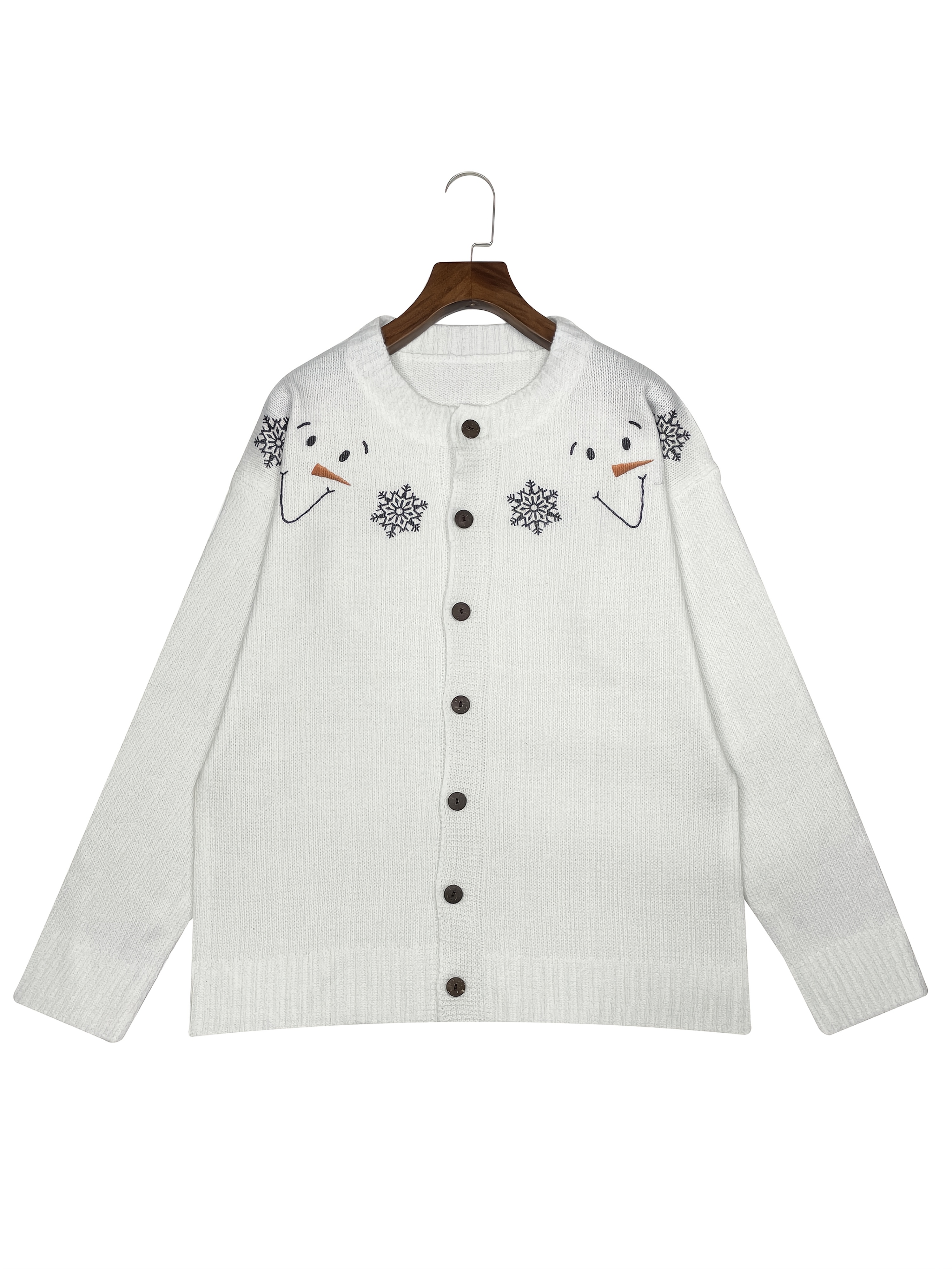 [Winter Sweater] Cozy White 3D Printed Snowman & Snowflake Sweater | Winter Cardigan with Buttons, All-Over Winter Design, Perfect for Young Fashionistas