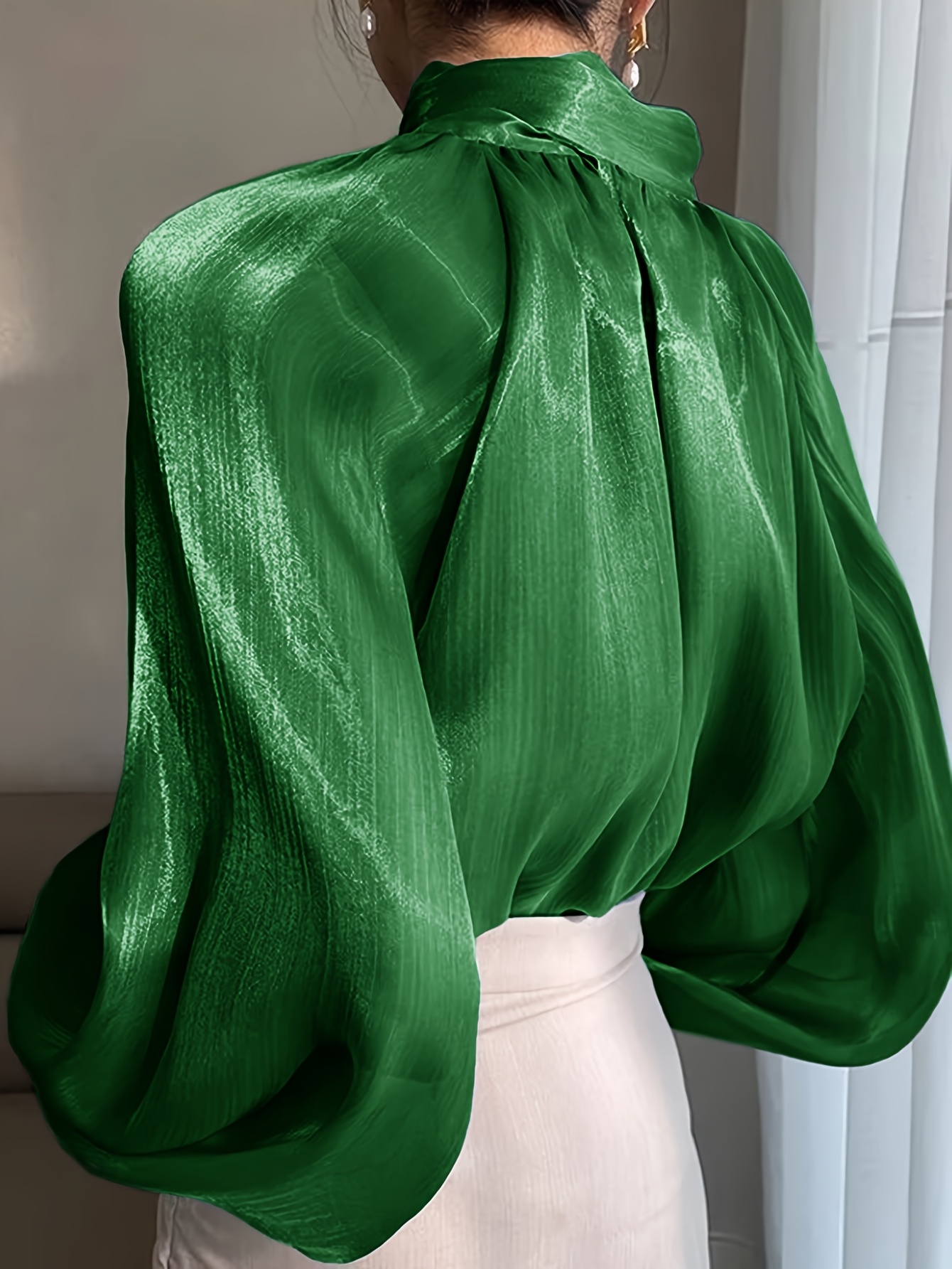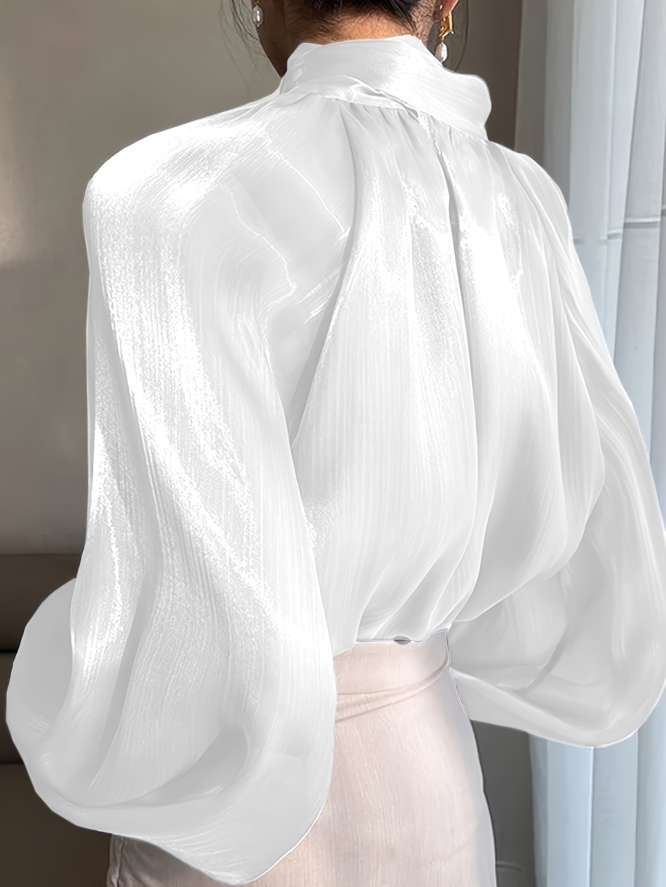 [Laceup Detailing Retro Fashion] Vintage Elegant Women's Blouse - Long Sleeve High Neck Shirt with Tie-Front Detail, All-Season Formal & Everyday Blouse for Office, Parties, Casual Outfits - Women's Clothing, Party Attire, Laceup Detailing, Office Attire, Retro Fashion