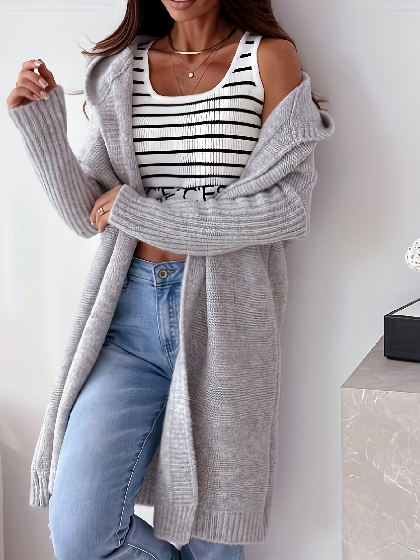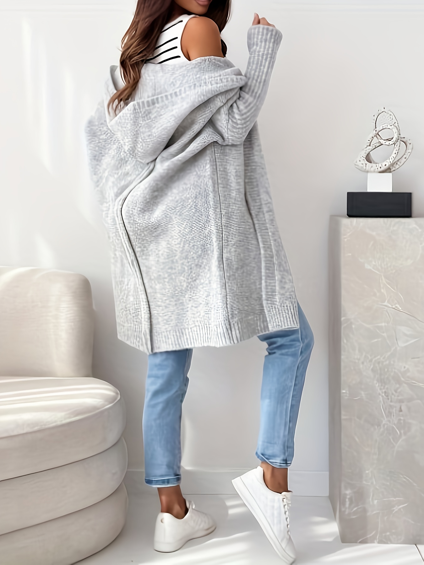 Women'S Light Gray Cardigan - Casual Loose-Fit Long Sleeve Hooded Sweater for Fall/Winter, Versatile Layering Piece with Button Details, Sweater Cardigan