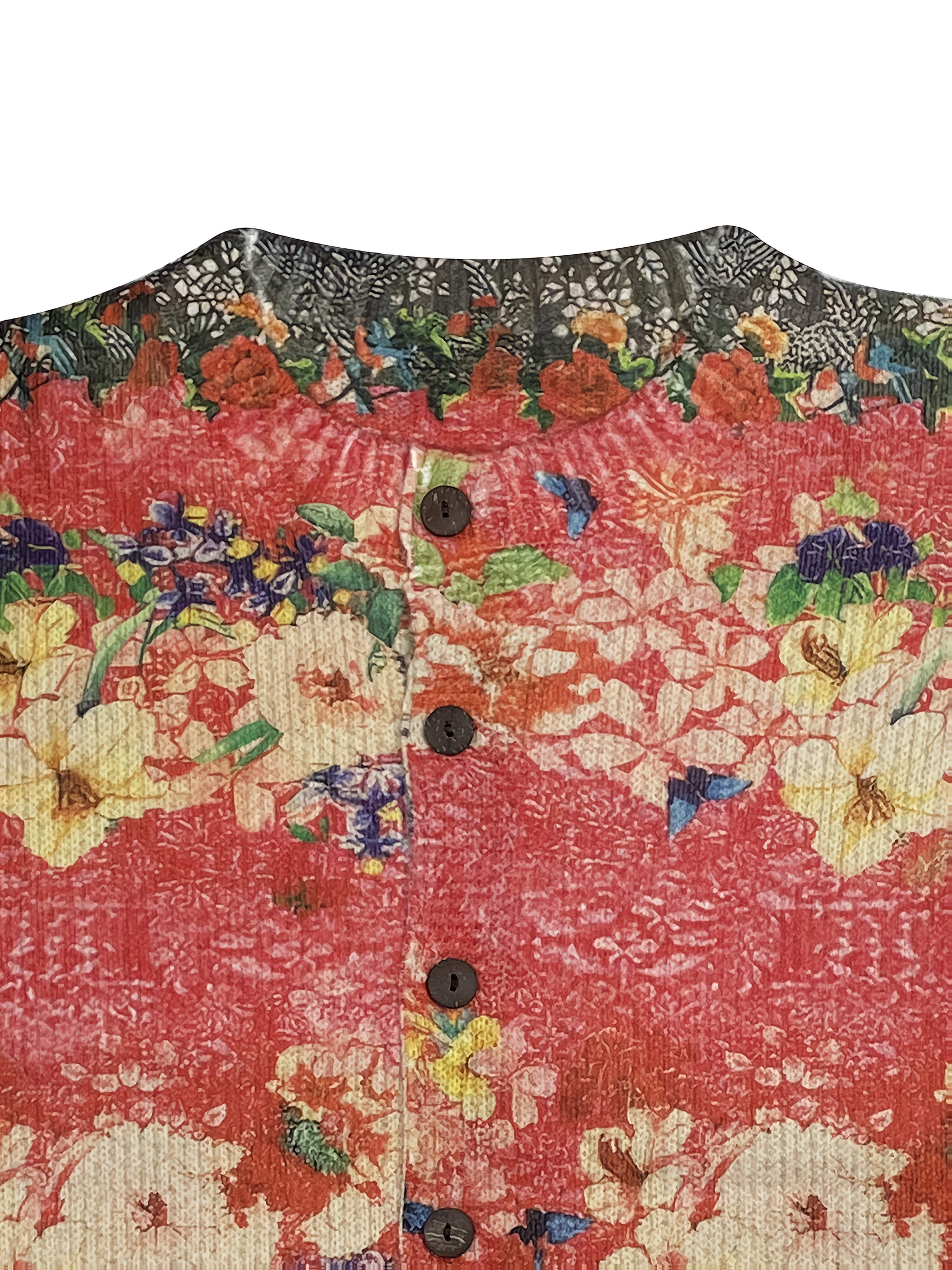 Women'S Vibrant Floral Print Cardigan - 3D All-Over Design, Button-Up Front, Long Sleeves, Lightweight & Breathable for Spring/Fall, White Ribbed Top Underneath, Casual Chic Style, Spring Outerwear | Vibrant Cardigan | Texture